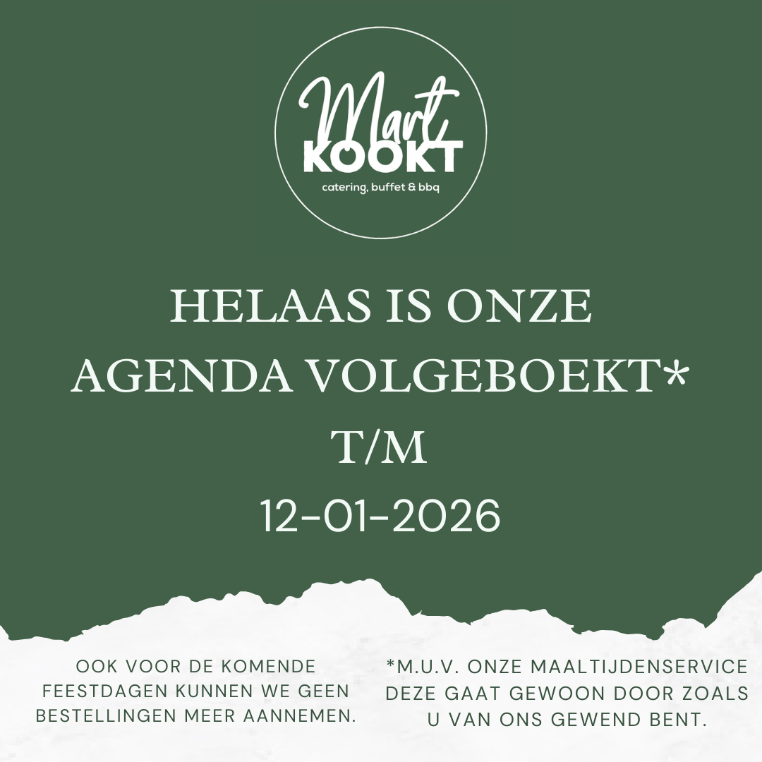 Mart Kookt! is een nuchter & flexibel catering bedrijf van Mart Bolster, In 2016 begonnen als hobby maar ondertussen voorzien van een complete kookstudio aan de Diepenheimseweg 28 in Neede.